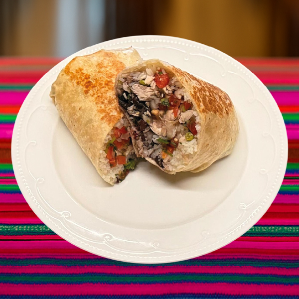 Is wrapped in a 12ā flour tortilla filied with pulled charcoal chicken, jasmine rice, Pico de gallo, queso fresco and whole black beans and a side of our yellow Sauce.