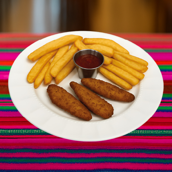Tender, breaded white-meat chicken strips fried to a golden crisp, served with our signature thick-cut steak fries.