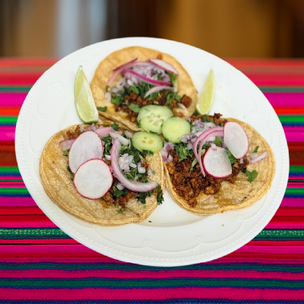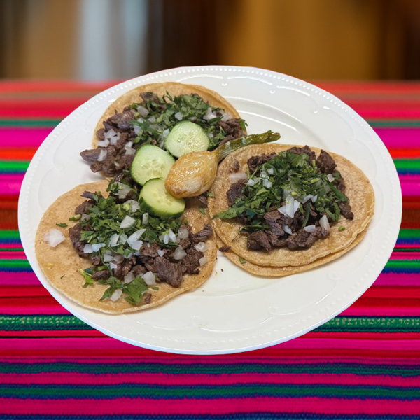 All of our tacos come with 2 corn tortillas and topped with diced red onion, sliced cucumber, and cilantro.