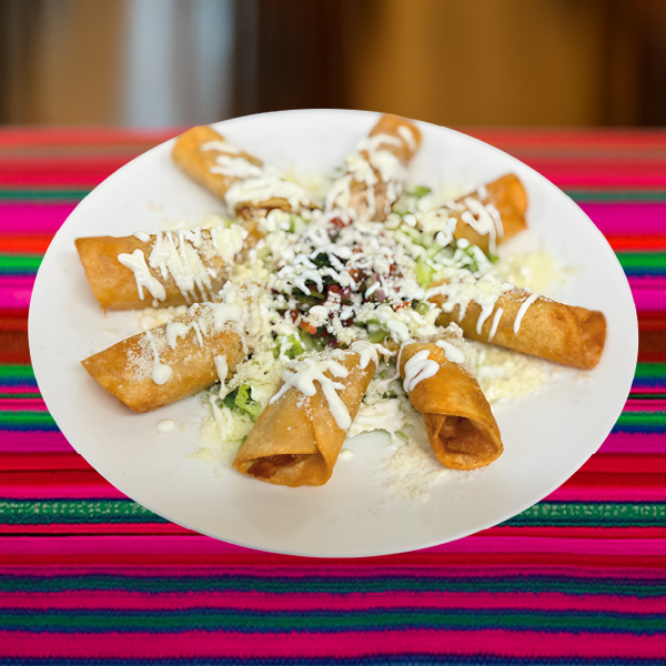 Savory pulled chicken, crispy fried and nestled in a delicate white corn tortilla. Served alongside a colorful mix of shredded lettuce, tangy pico de gallo, and crumbled cotija cheese, all brought together by a dollop of rich Mexican table cream